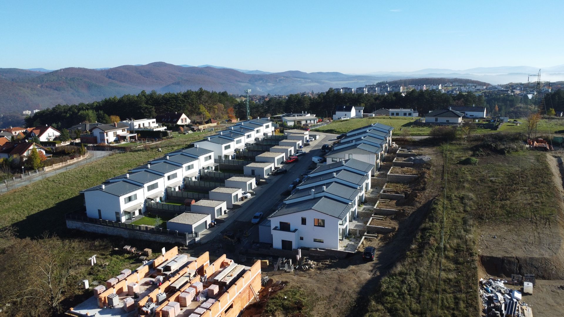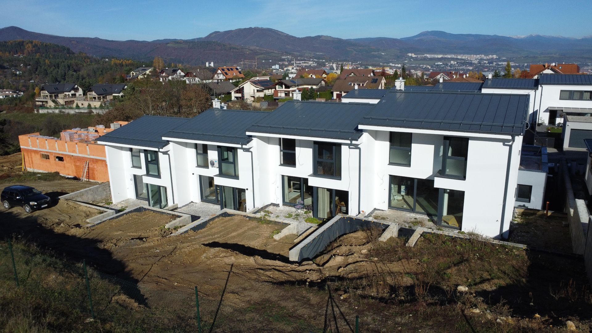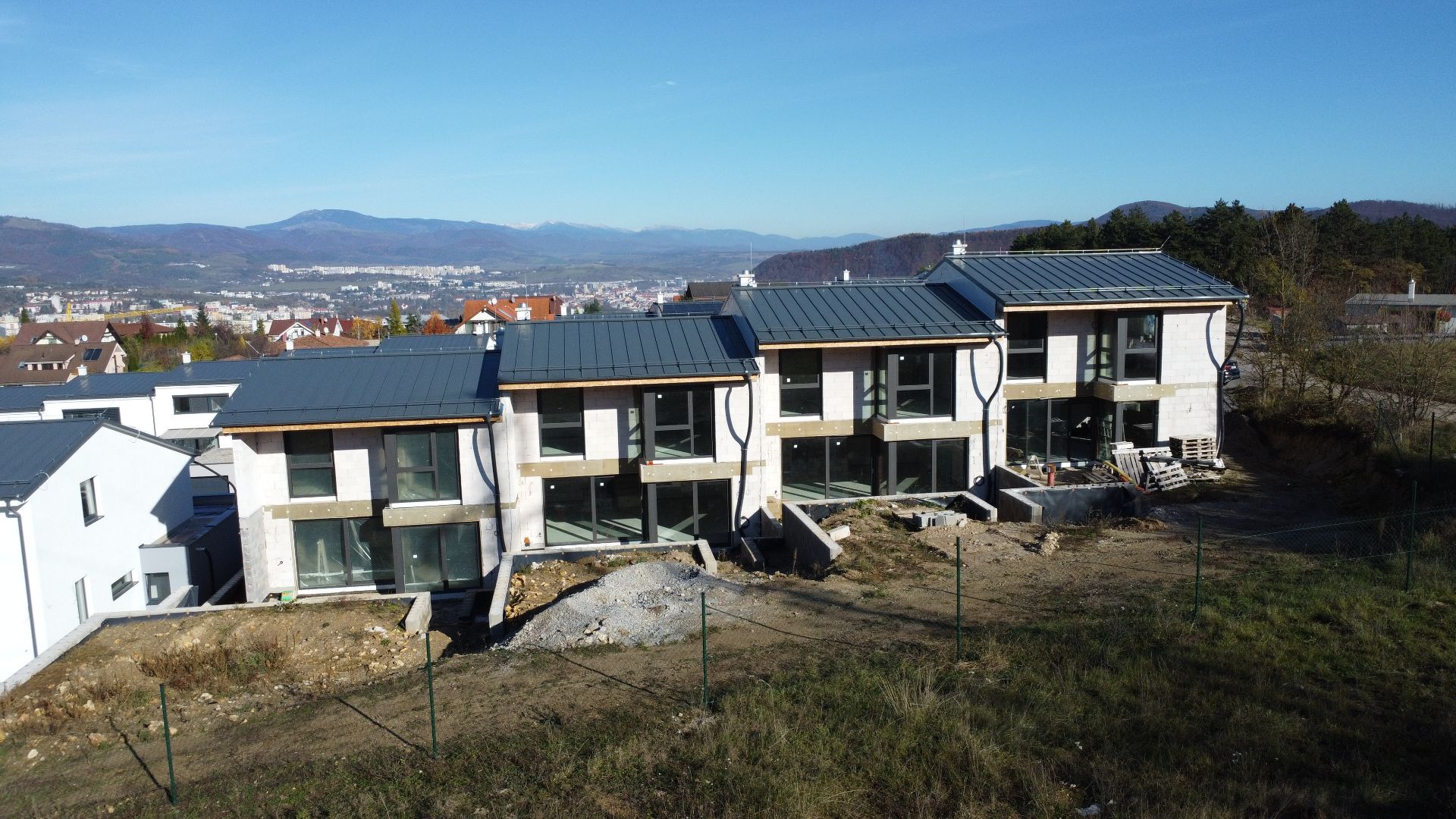 Ponúkame na predaj posledné dva 4 - izbové rodinné domy (obidva krajné) s dvojgarážou, ktoré sa nachádzajú v radovej zástavbe na Suchom Vrchu, v pokojnej časti tejto lokality, kde sú priamo spojené s prírodou. Rodinné domy stoja na pozemku o výmere 391 m2 resp. 427 m2. Na prízemí sa nachádza vstupná chodba, technická miestnosť a WC. Jedným schodiskovým ramenom sa vstupuje do hlavnej časti domu, kde je priestranná obývacia izba s kuchyňou (špajza), kde je aj výstup na terasu resp. záhradu. Na medziposchodí sa nachádza izba a kúpeľňa s WC. Na 1.NP sú situované 2 samostatné izby, kúpeľňa a technická miestnosť. Úžitková plocha domu je 144 m2 + 26 m2 terasa + 35 m2 dvojgaráž. Okná na dome sú hliníkové, strecha - Lindab. Každý dom bude mať položenie trávnika, dlažieb, chodníka, vnútorné omietky. Celý projekt vychádza z myšlienky poskytnúť Vám bezpečie a súkromie s krásnym výhľadom na okolité hory a mesto.